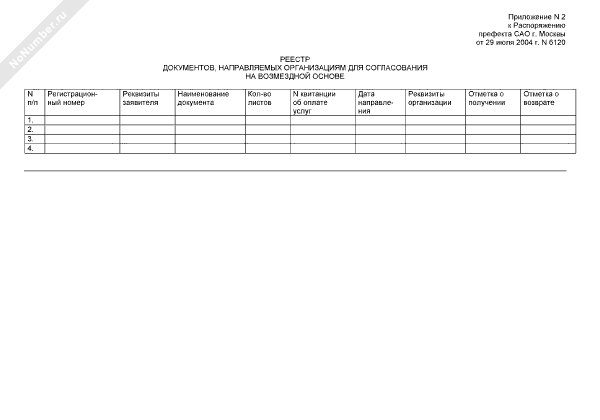 Реестр документов, направляемых организациям для согласования на возмездной основе (рекомендуемый образец заполнения)