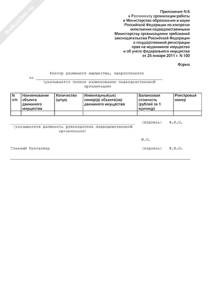Реестр движимого имущества, закрепленного за организацией, подведомственной Министерству образования и науки Российской Федерации (рекомендуемый образец заполнения)