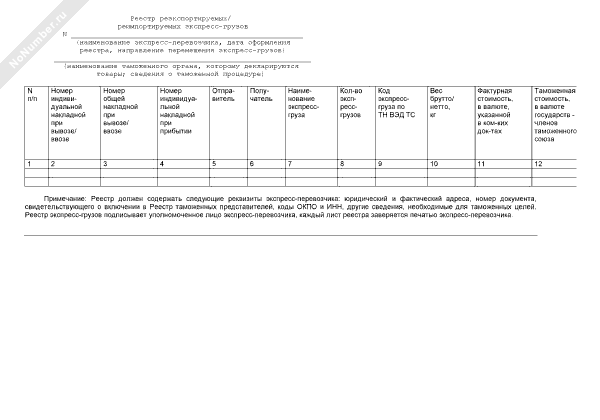 Реестр экспресс-грузов (рекомендуемый образец заполнения)