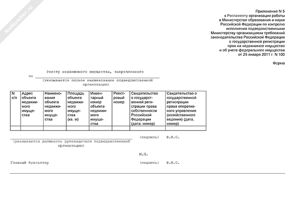 Реестр недвижимого имущества, закрепленного за организацией, подведомственной Министерству образования и науки Российской Федерации (рекомендуемый образец заполнения)