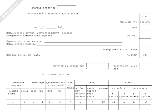 Сводный реестр поступлений и выбытий средств бюджета. Форма № 0511009