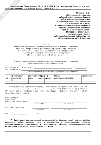 - Источник– Постановление Правительства РФ от 29.12.2010 № 1182