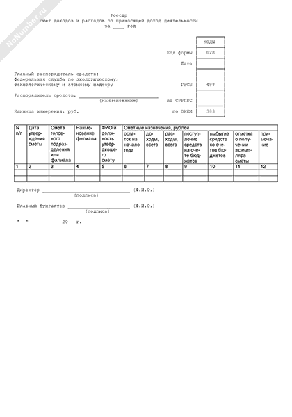 Реестр смет доходов и расходов по приносящей доход деятельности организации, подведомственной Федеральной службе по экологическому, технологическому и атомному надзору (рекомендуемый образец заполнения)