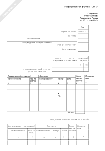 - Номер типовой формы ТОРГ-31, 0330231