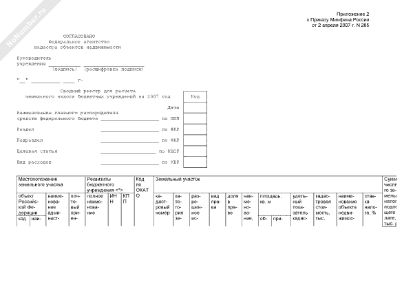 - Источник– Приказ Минфина РФ от 02.04.2007 № 285