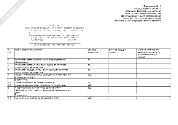 Сводный реестр получателей субсидий на оплату жилого помещения и коммунальных услуг, имеющих место жительства в муниципальном образовании «Люберецкий район» Московской области (рекомендуемый образец заполнения)