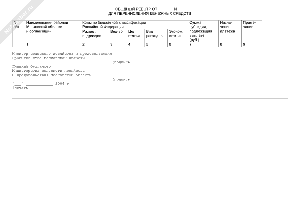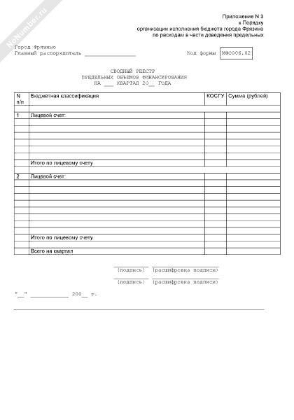 Сводный реестр предельных объемов финансирования. Форма № МФО006.02