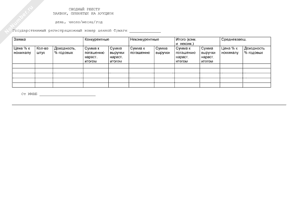 Сводный реестр заявок, принятых на аукцион по размещению облигаций (рекомендуемый образец заполнения)