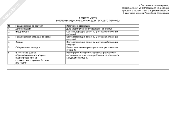 Регистр учета внереализационных расходов текущего периода (рекомендуемый образец заполнения)