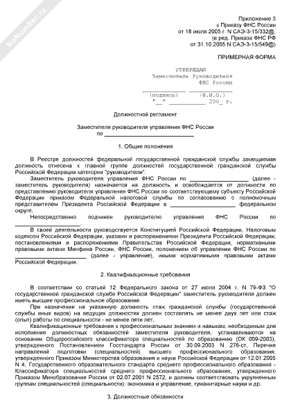 Примерный должностной регламент государственного гражданского служащего Московской области (рекомендуемый образец заполнения)