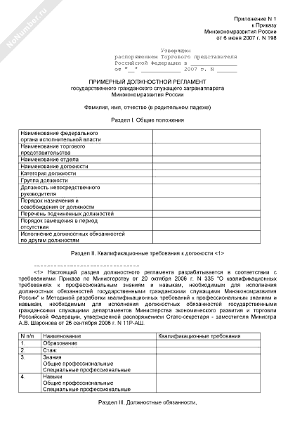 Примерный должностной регламент государственного гражданского служащего загранаппарата Минэкономразвития России (рекомендуемый образец заполнения)