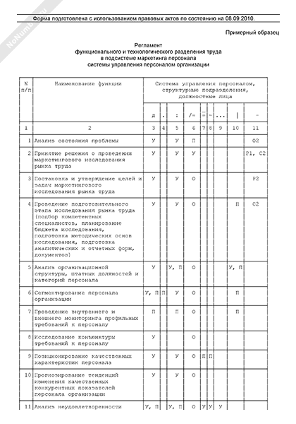 Регламент функционального и технологического разделения труда в подсистеме маркетинга персонала системы управления персоналом организации (рекомендуемый образец заполнения)