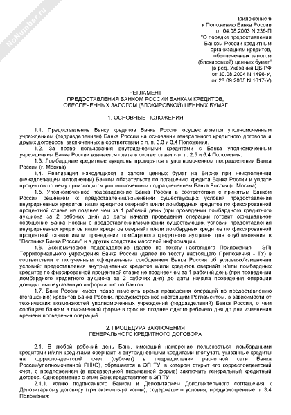 Регламент предоставления Банком России банкам кредитов, обеспеченных залогом (блокировкой) ценных бумаг
