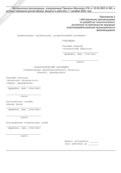 Технологический регламент на производство продукции нефтеперерабатывающей промышленности (разрабатывается нефтеперерабатывающей организацией)