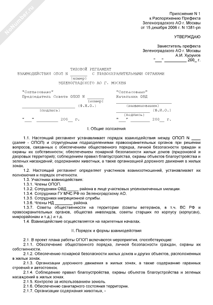 Типовой регламент взаимодействия ОПОП с правоохранительными органами Зеленоградского административного округа города Москвы (рекомендуемый образец заполнения)