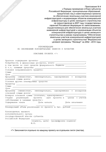 Рекомендации по оформлению пояснительных записок к проектам по обеспечению земельных участков под жилищное строительство коммунальной инфраструктурой (рекомендуемый образец заполнения)