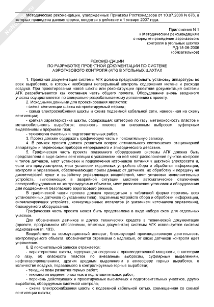 Рекомендации по разработке проектной документации по системе аэрогазового контроля (АГК) в угольных шахтах