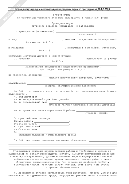 Рекомендации по заключению трудового договора (контракта) в письменной форме