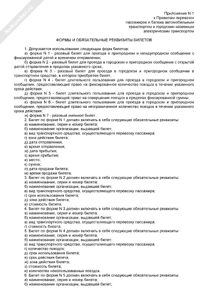 Формы и обязательные реквизиты билетов, предназначенных для перевозок пассажиров и багажа автомобильным транспортом и городским наземным электрическим транспортом (рекомендуемый образец заполнения)