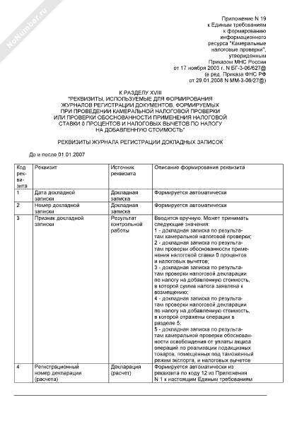 Реквизиты журнала регистрации докладных записок (к разделу XVIII)