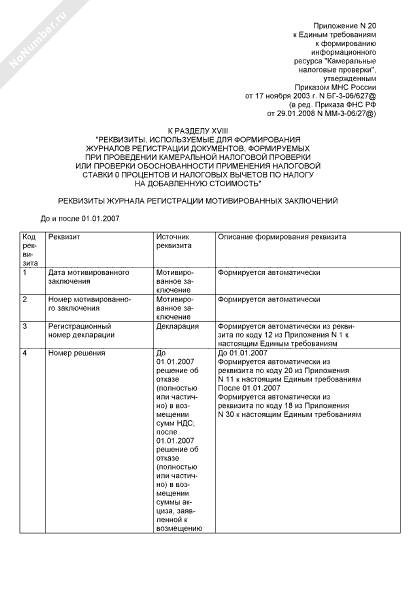 Реквизиты журнала регистрации мотивированных заключений (к разделу XVIII)
