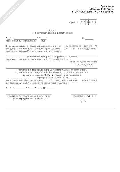 - 243Решение о государственной регистрации юридических лиц и индивидуальных предпринимателей. Форма № Р80001