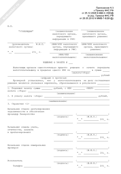 - 259Решение о зачете переплаты налогоплательщику в пределах одного КБК