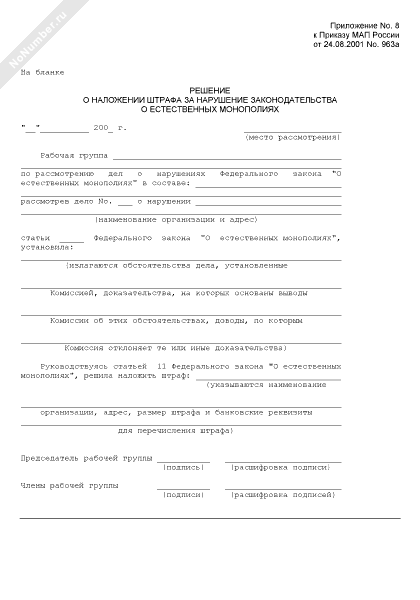 - 269Решение о наложении штрафа за нарушение законодательства о естественных монополиях