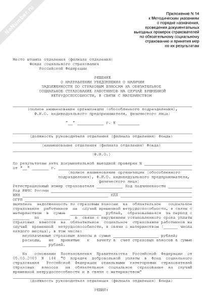 - 270Решение о направлении уведомления о наличии задолженности по страховым взносам на обязательное социальное страхование работников на случай временной нетрудоспособности, в связи с материнством