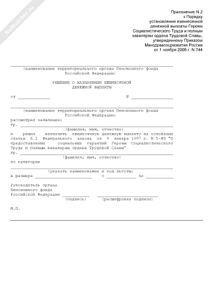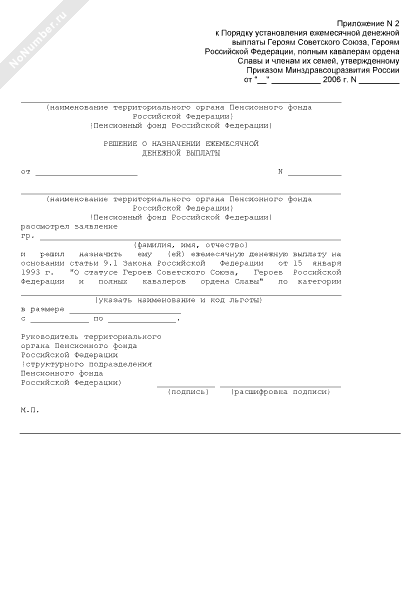 - 267Решение о назначении ежемесячной денежной выплаты Герою Социалистического труда или полному кавалеру ордена Трудовой Славы
