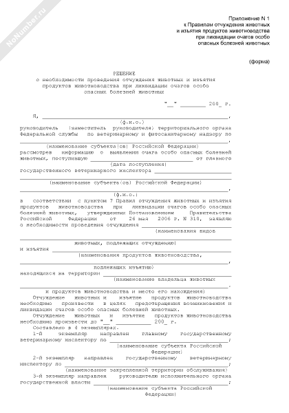- 276Решение о необходимости проведения отчуждения животных и изъятия продуктов животноводства при ликвидации очагов особо опасных болезней животных