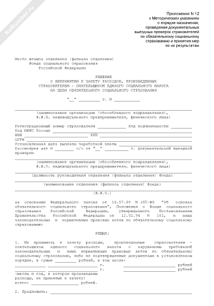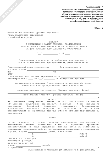 - 280Решение о непринятии к зачету расходов, произведенных страхователем — плательщиком единого социального налога на цели обязательного социального страхования по акту камеральной проверки