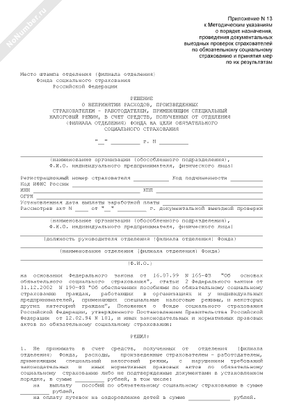 - 279Решение о непринятии расходов, произведенных страхователем — работодателем, применяющим специальный налоговый режим, в счет средств, полученных от отделения (филиала отделения) Фонда на цели обязательного социального страхования