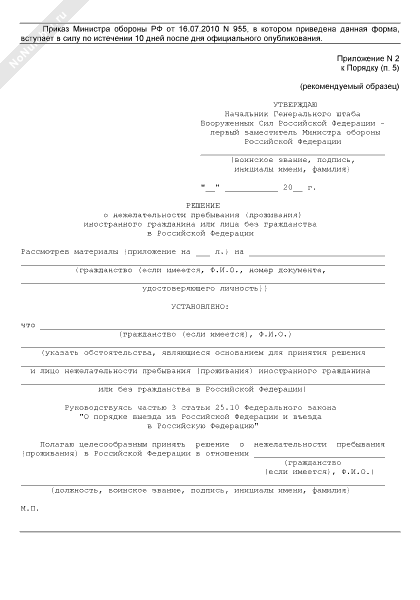 - 275Решение о нежелательности пребывания (проживания) иностранного гражданина или лица без гражданства в Российской Федерации