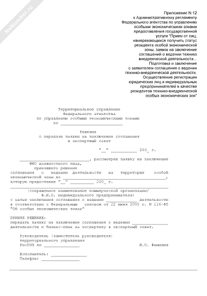 - 282Решение о передаче заявки на заключение соглашения о ведении технико-внедренческой деятельности на территории особой экономической зоны в экспертный совет