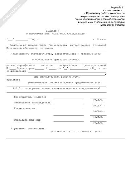 - 284Решение о переоформлении аттестата аккредитации экспертов по вопросам рынка недвижимости, прав собственности и земельных отношений на территории Московской области (форма № 11)