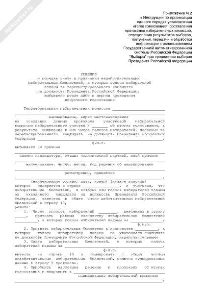 - 289Решение о порядке учета и признании недействительными избирательных бюллетеней, в которых голоса избирателей поданы за зарегистрированного кандидата на должность Президента Российской Федерации, выбывшего после либо в период проведения досрочного голосования