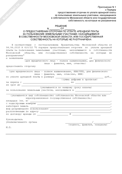 - 293Решение о предоставлении отсрочки по уплате арендной платы за пользование земельными участками, находящимися в собственности Московской области, или государственная собственность на которые не разграничена