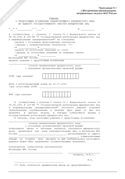 - 294Решение о предстоящем исключении недействующего юридического лица из единого государственного реестра юридических лиц