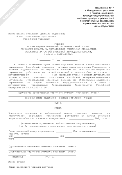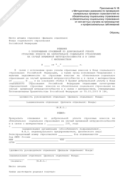 - 298Решение о прекращении отношений по добровольной уплате страховых взносов на обязательное социальное страхование работников на случай временной нетрудоспособности, в связи с материнством