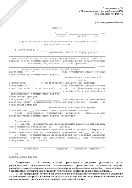 - 297Решение о прекращении полномочий уполномоченных представителей политической партии