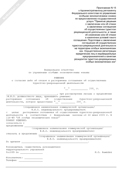 - 426Решение о согласии либо об отказе в расторжении соглашения об осуществлении туристско-рекреационной деятельности на территории особой экономической зоны