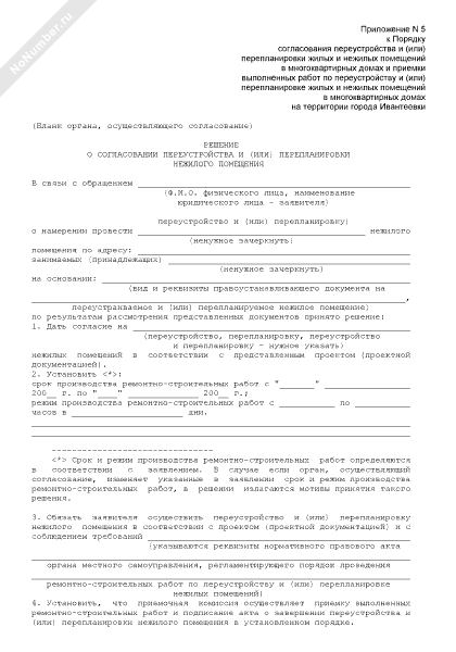 - 422Решение о согласовании переустройства и (или) перепланировки нежилого помещения на территории города Ивантеевка Московской области