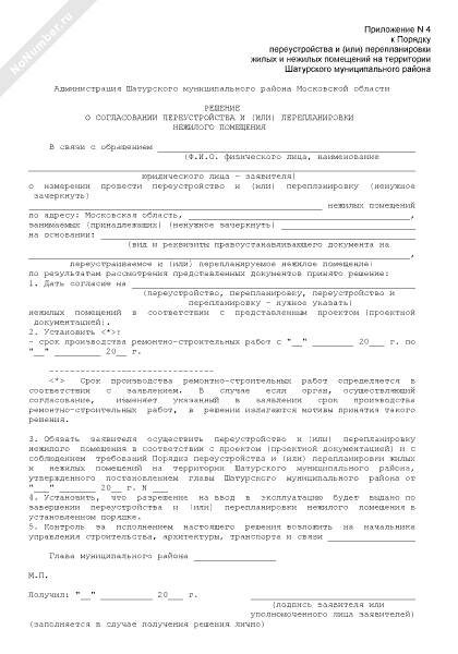 - 423Решение о согласовании переустройства и (или) перепланировки нежилого помещения на территории Шатурского муниципального района Московской области