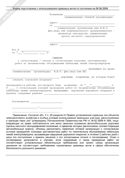 - 428Решение о согласовании (отказе в согласовании) плановых (регламентных) работ по техническому обслуживанию кабельных линий электропередачи