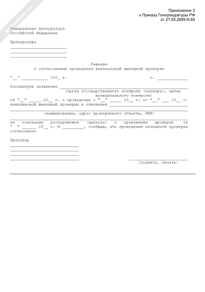 - 427Решение о согласовании проведения внеплановой выездной проверки Генеральной прокуратурой Российской Федерации