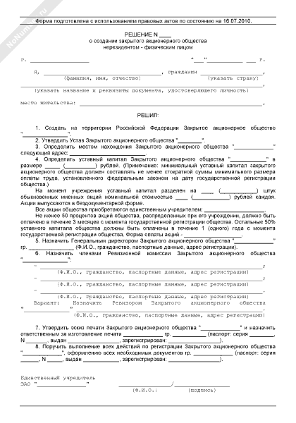 - 430Решение о создании закрытого акционерного общества нерезидентом — физическим лицом