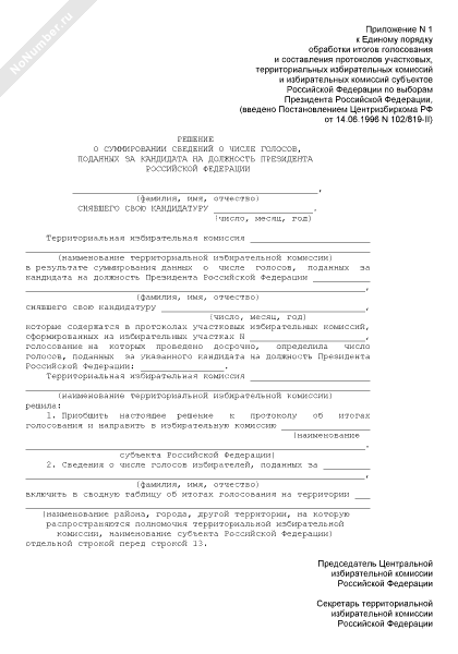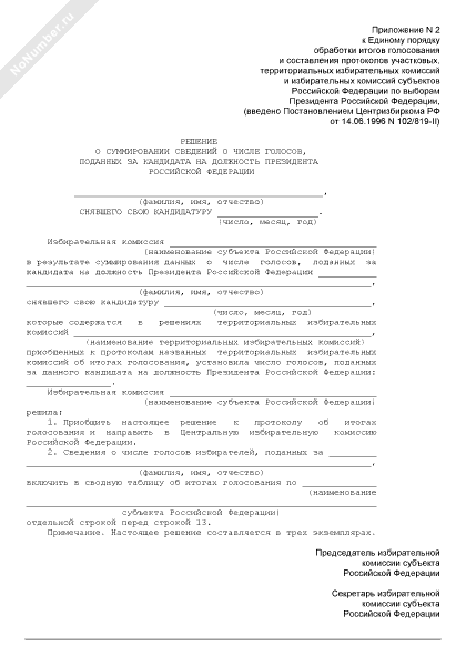 - 439Решение о суммировании сведений о числе голосов, поданных за кандидата на должность Президента Российской Федерации в территориальной избирательной комиссии
