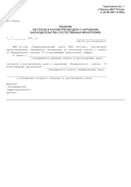 - 487Решение об отказе в рассмотрении дела о нарушении законодательства о естественных монополиях