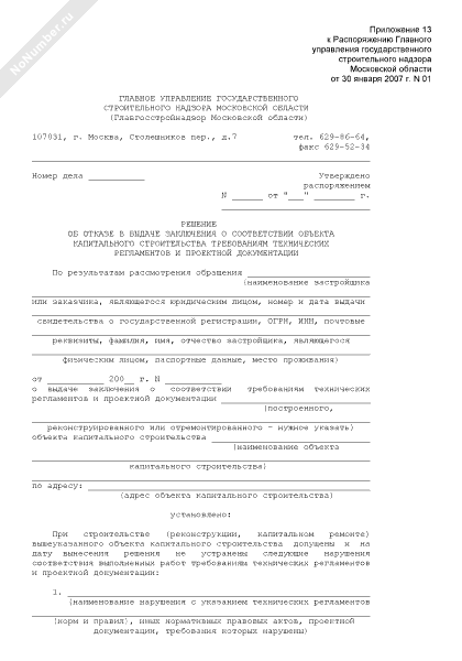 - 481Решение об отказе в выдаче заключения о соответствии объекта капитального строительства в Московской области требованиям технических регламентов и проектной документации